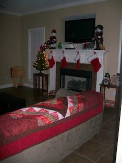 I love the fireplace, it makes me feel all warm and cozy. Becky is a great lady and has a lot of talent. With all she is going through she has remained so close to God, she is so strong. The quilt looks great in you house.